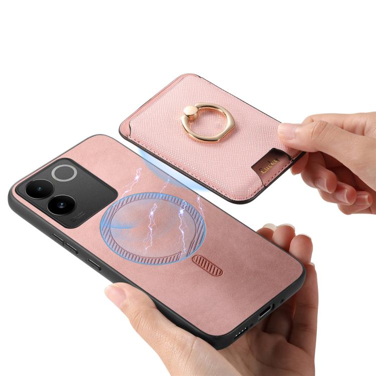 Funda para Vivo S20 Pro con Anillo de Cuero Retro Cruzado, Inserto Vertical para Tarjetas, Magsafe (Rosa)