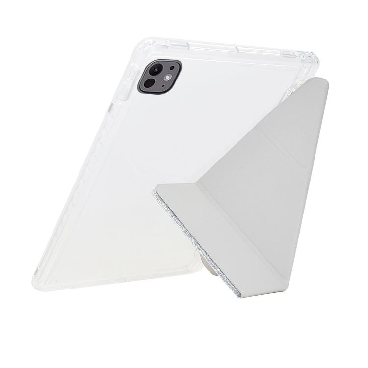 Funda plegable en Y de acrílico transparente con purpurina y cuero inteligente para iPad Air 13 (2024/2025/Pro 12.9) (plateada)
