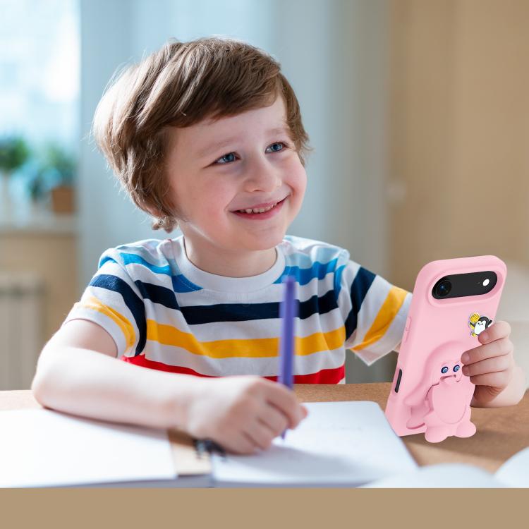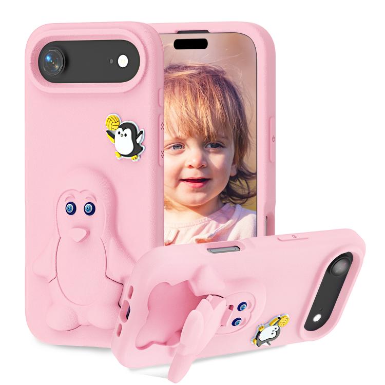 Funda protectora antigolpes de EVA con diseño de pingüino bebé para iPhone Air con soporte (rosa)