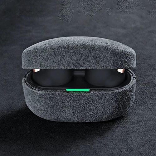 Funda protectora de cuero con tapa de gamuza para auriculares Bluetooth Sony WF-1000 XM5 (gris claro)