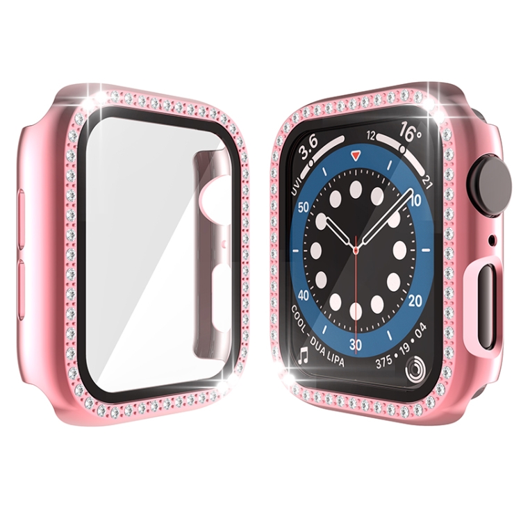 Funda Protectora Diamante PC Galvanoplastia con Vidrio Templado para Apple Watch Series 3 2 1 42mm (Rosa)