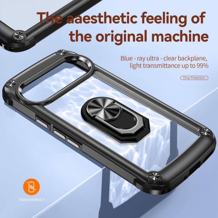 Funda Protectora de Lente TPU + PC para Google Pixel 9 y 9 Pro con Soporte de Anillo (Negro)