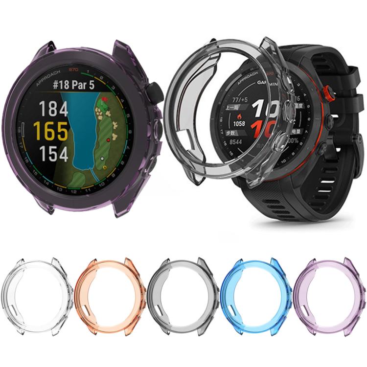 Funda protectora de TPU hueca para reloj Garmin Approach S70 de 47 mm (transparente y morada)