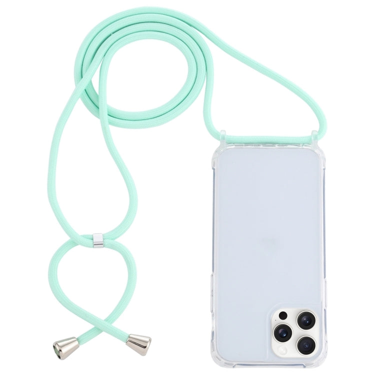 Funda Protectora para Teléfono iPhone 16 Pro Max Airbag Acrílico Transparente con Cordón (Verde Menta)