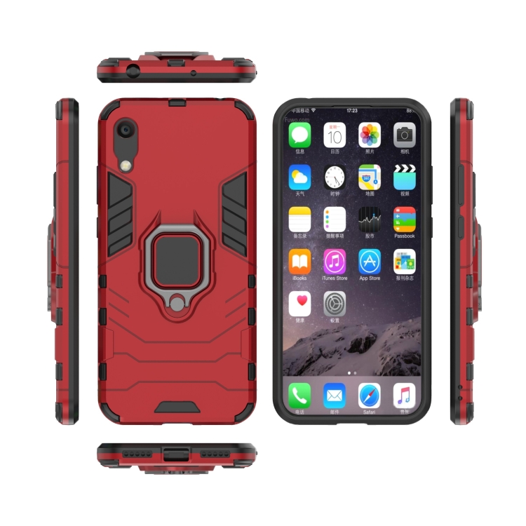 Funda Protectora PC + TPU para Huawei Honor 8A Y6 Pro 2019 con Soporte Anillo Magnético (Rojo)