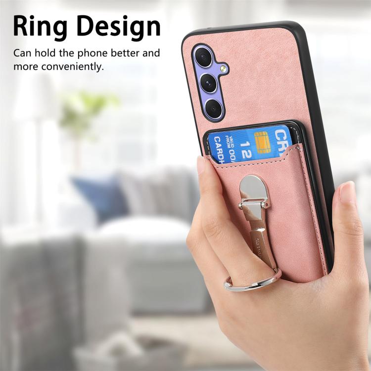 Funda retro plegable con anillo y tarjetero MagSafe para Samsung Galaxy A24 5G (rosa)