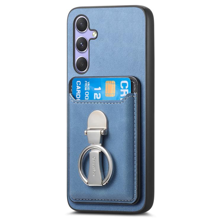 Funda retro plegable con anillo y tarjetero MagSafe para Samsung Galaxy A35 5G (azul)