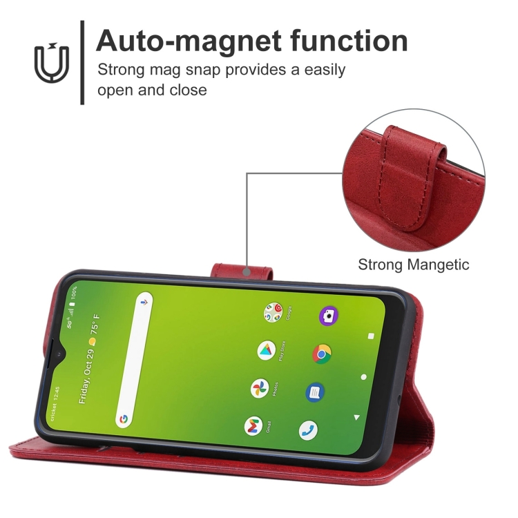 Funda Telefónica de Cuero para Cricket Dream 5G y AT&T Radiant Max 5G (Rojo)