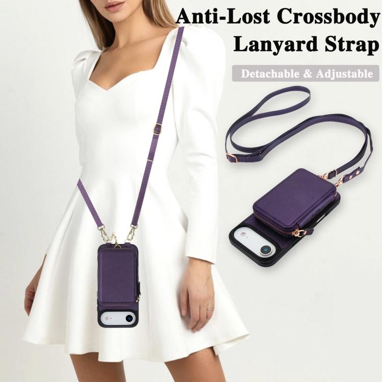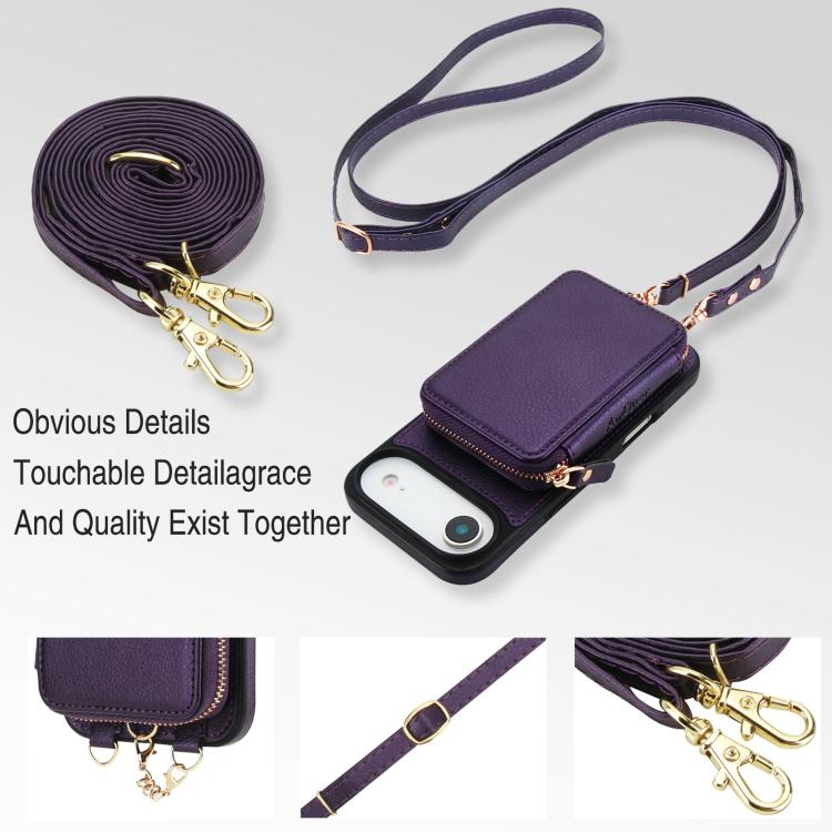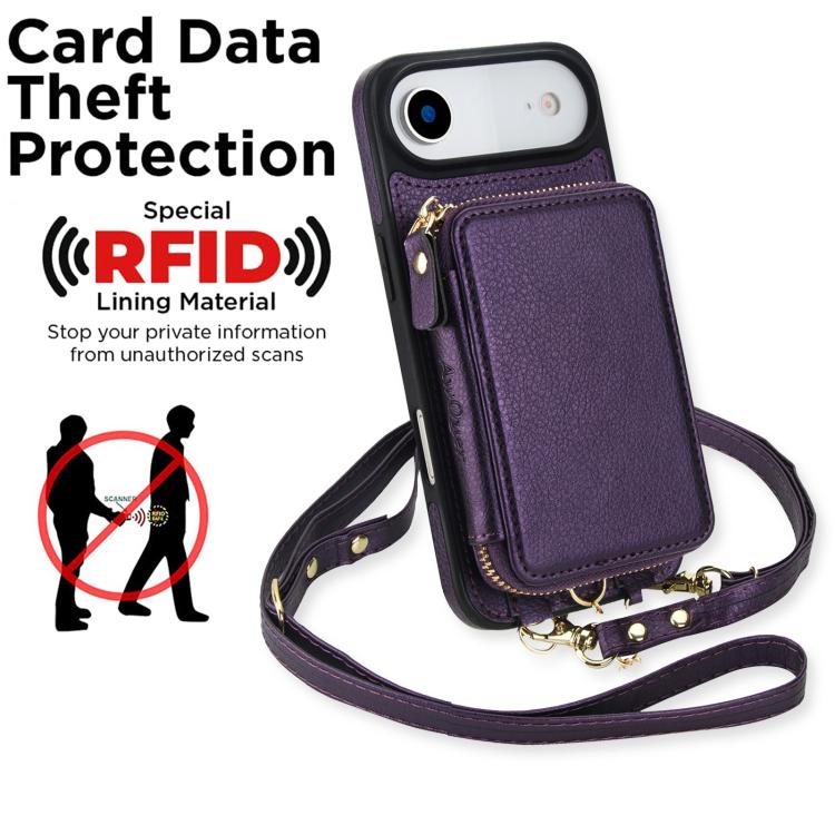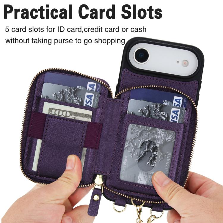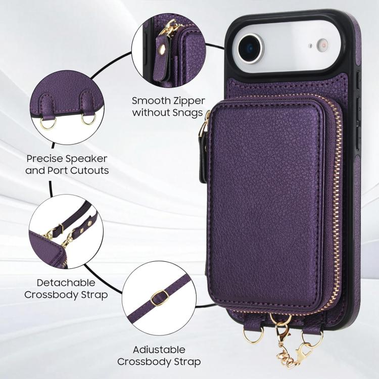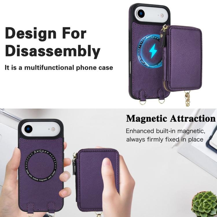Funda tipo cartera bandolera con cremallera 2 en 1 AwQuer para iPhone Air, con parte trasera de cuero (morado oscuro).