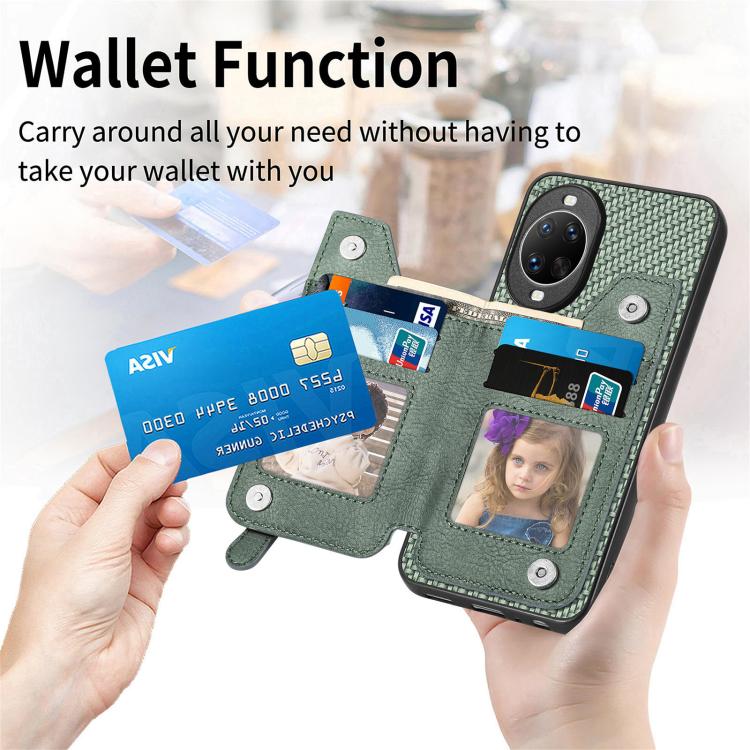 Funda tipo cartera con cremallera horizontal de fibra de carbono para Huawei Nova 14 (negra)