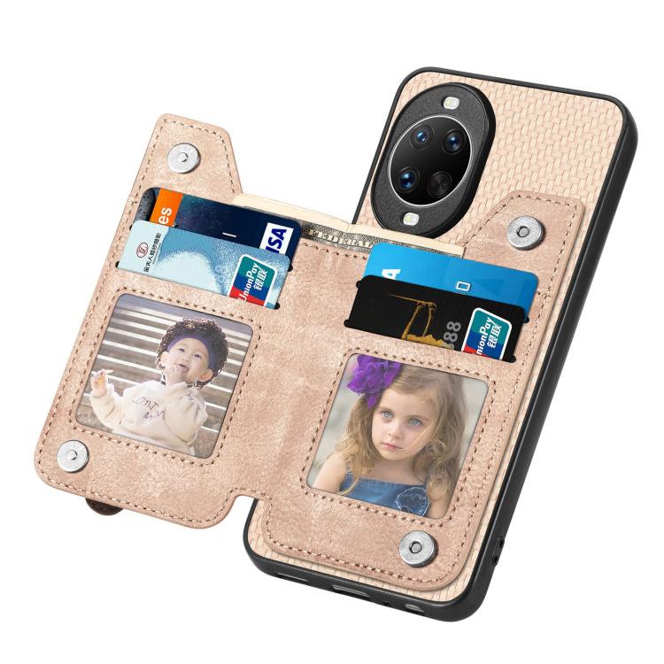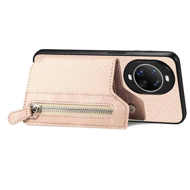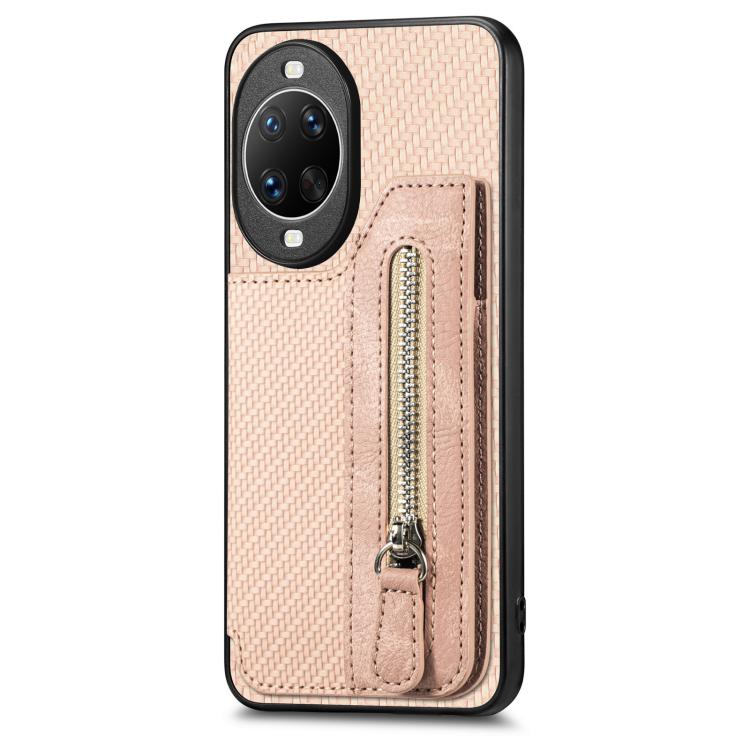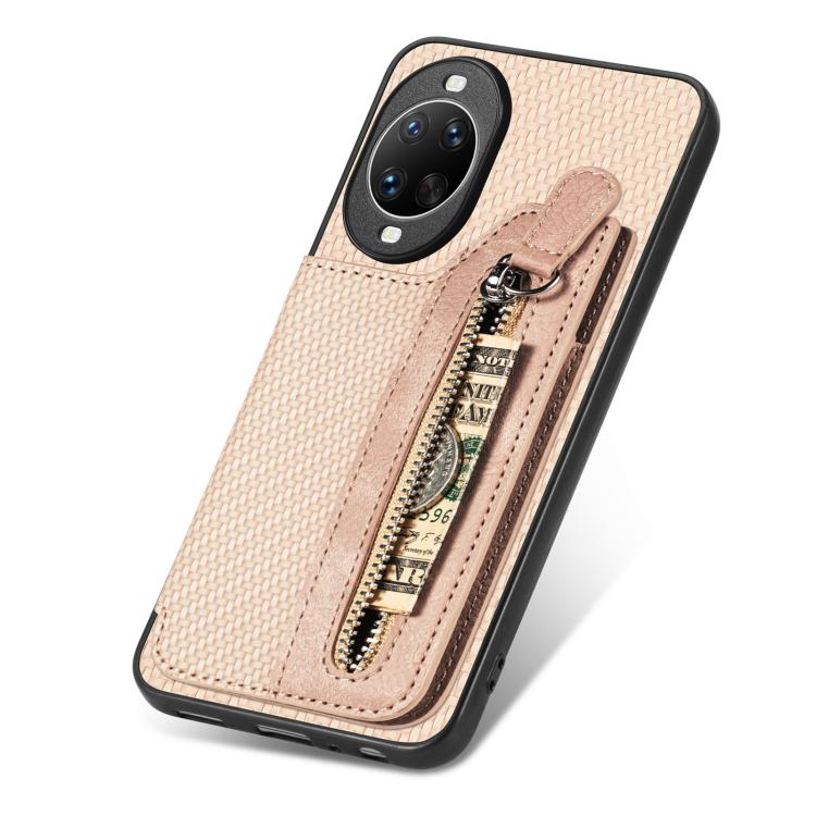 Funda tipo cartera con cremallera horizontal y tapa de fibra de carbono para Huawei Nova 14 (caqui)