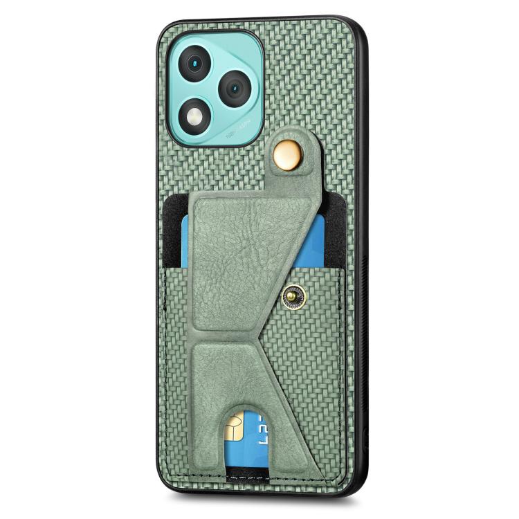 Funda tipo cartera de fibra de carbono con tarjetero y soporte en forma de K para Honor 400 Lite (verde)