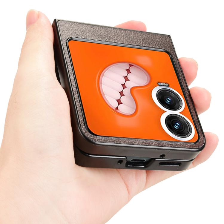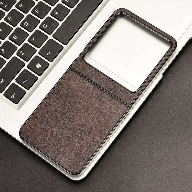 Funda Trasera para Tecno Phantom V Flip2 con Textura de Lichi (Marrón)