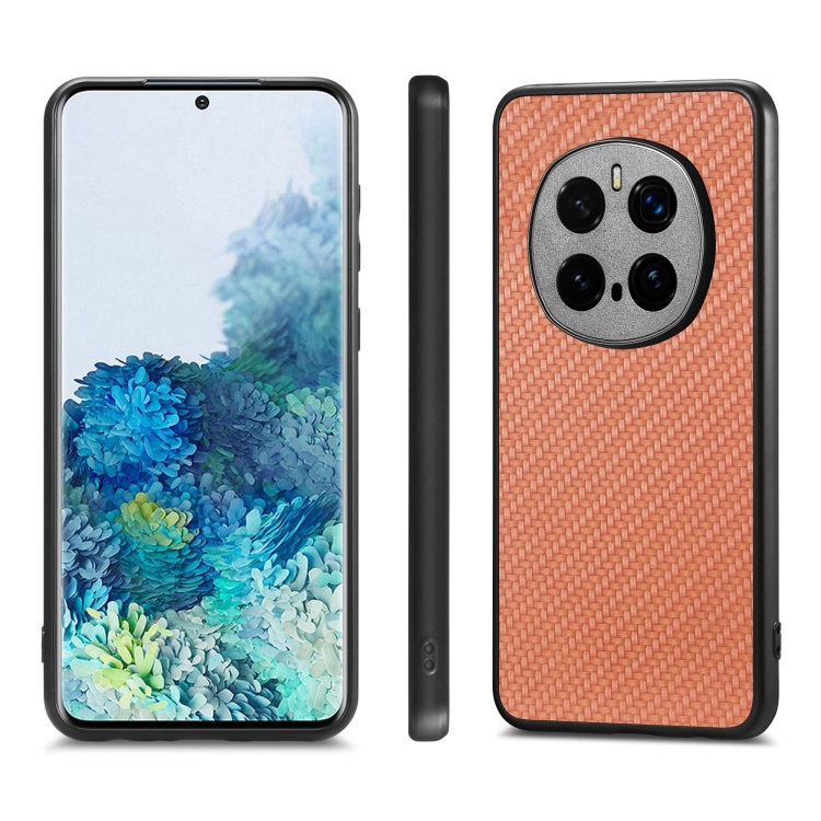 Funda Trasera Cuero con Textura Fibra de Carbono para Honor Magic7 Pro (Marrón)