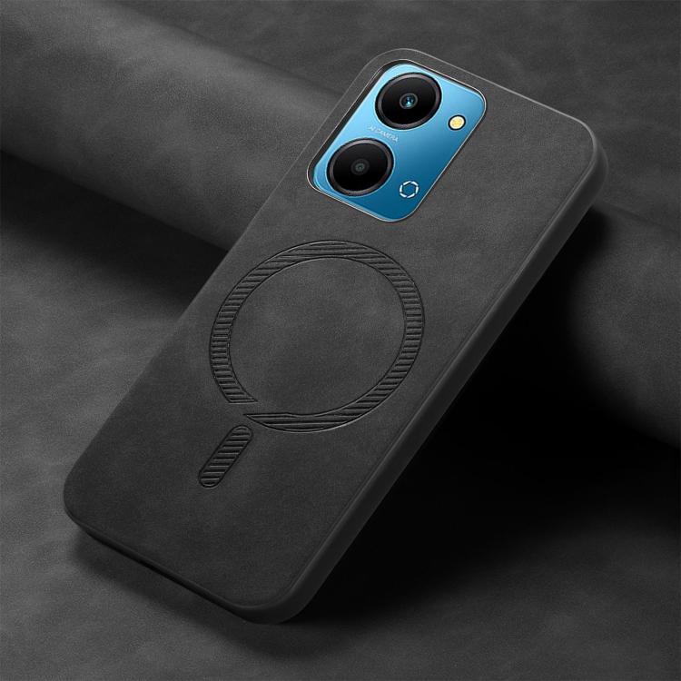 Funda Trasera Magnética de PU para Honor Play7T Retro Magsafe (Negra)
