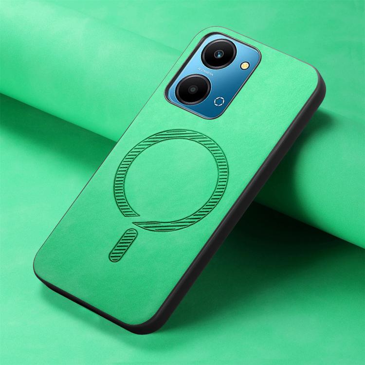 Funda Trasera Magnética de PU para Honor Play7T Retro Magsafe (Verde)