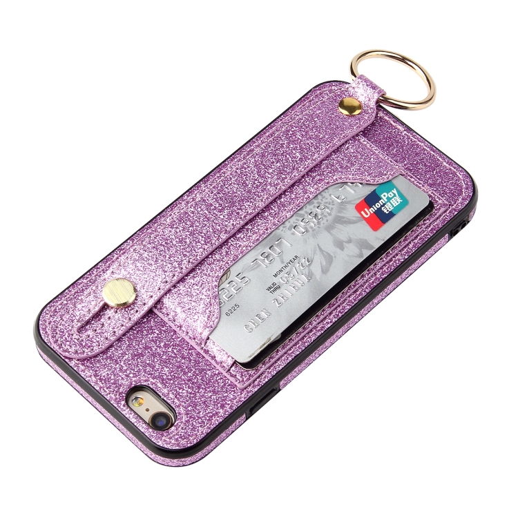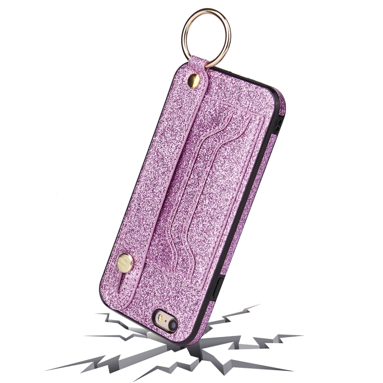 Funda Protectora para iPhone 6 / 6S Glitter Powder Pu + TPU con Soporte, Ranuras para Tarjetas y Correa para Muñeca (Púrpura)