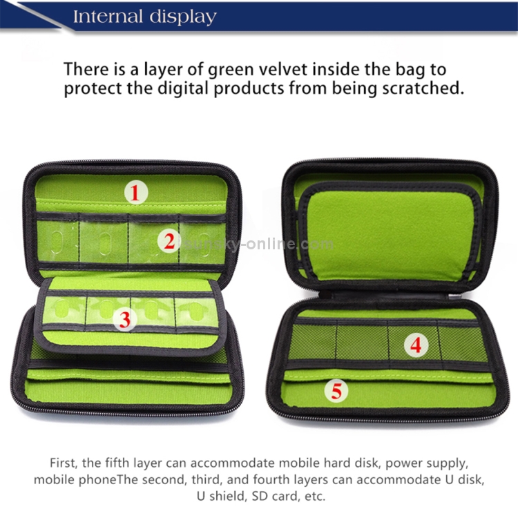 5. La bolsa de red incorporada puede agregar espacio de almacenamiento adicional, por lo que puede almacenar datos de los auriculares y otras líneas de datos.