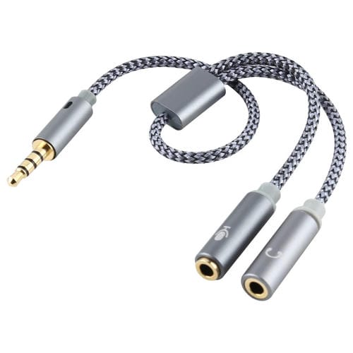 - 1x Cable 2 en 1 3,5 mm Macho a Micrófono y Audio Trenzado Hembra (26 cm)