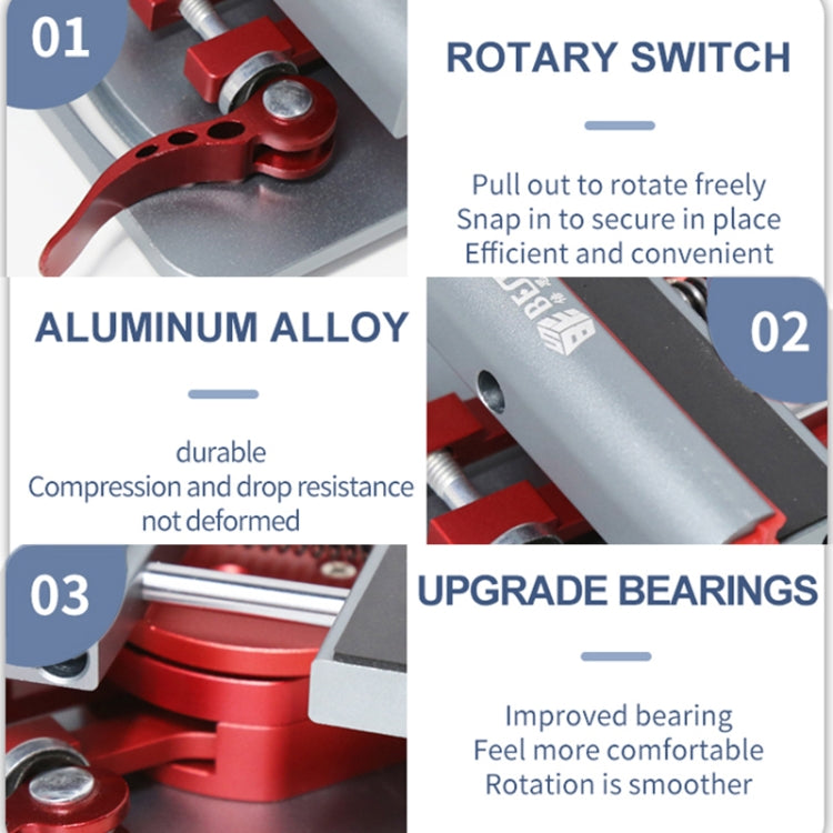 El Motor de Placa Base IC modelo BST-001S2 es un componente diseñado para facilitar la manipulación y reparación de Placas Base en dispositivos electrónicos. Este Motor cuenta con una estructura rotativa de 360 grados que permite un ajuste preciso y versátil durante los procesos técnicos. Fabricado en aleación de aluminio, ofrece durabilidad y resistencia para un uso prolongado. Su diseño incluye un Marco de silicona y una almohadilla inferior de esponja que protegen el dispositivo durante su manipulación, evitando daños en Botones o superficies. Es compatible con una amplia gama de modelos gracias a su capacidad de ajuste entre 6 y 9 cm de distancia, y está equipado con pies antideslizantes y una perilla de ajuste para mayor estabilidad y control. Este Motor es ideal para técnicos y usuarios que reparan por cuenta propia y requieren una herramienta confiable para la manipulación de Placas Base.