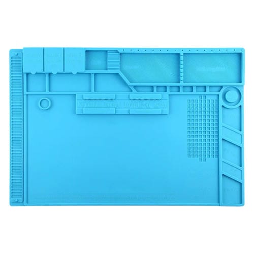 - Dimensiones: 48 x 32 cm; superficie resistente al calor; propiedades ESD; múltiples orificios para organización; magnético