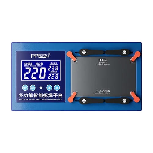 La Plataforma Desoldadora Inteligente Multifuncional PPD está diseñada para la Reparación especializada de modelos iPhone desde la serie 11 hasta la 14 Pro Max. Esta plataforma permite realizar desoldados precisos en Placas Principales sin causar daños, gracias a su Pantalla Digital inteligente y control de temperatura exacto. Su función Principal es facilitar el desmontaje y reemplazo de módulos internos, optimizando el proceso de Reparación con un calentamiento rápido y uniforme. Además, incorpora un diseño resistente a altas temperaturas que previene deformaciones y quemaduras, asegurando un uso seguro y eficiente para Técnicos y usuarios con experiencia en Reparación de dispositivos Apple.