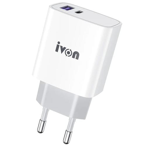 Cargador Ivon Ad52 18W Usb-C y Usb Puerto Dual Pd Cargo Fast (Enchufe de la Ue)