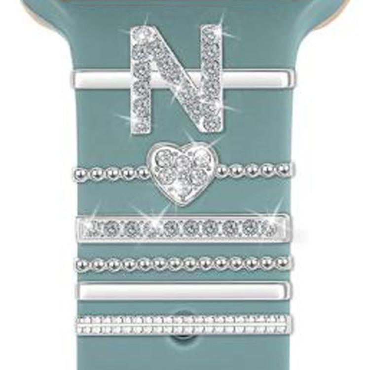 Juego de 6 correas de silicona universales para reloj inteligente, accesorios de metal decorativos, tamaño N (plata)