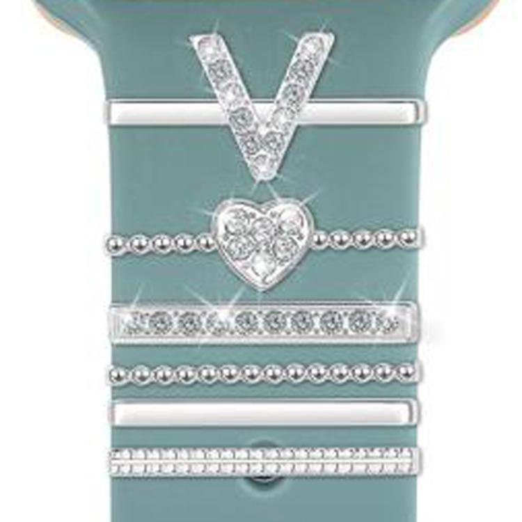 Juego de 6 correas de silicona universales para reloj inteligente, accesorios de metal decorativos, tamaño V (plata)