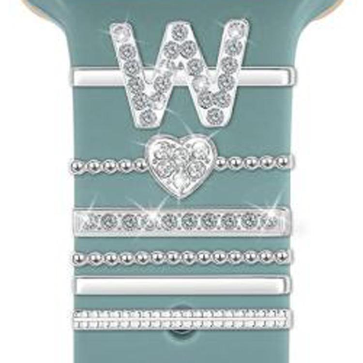 Juego de 6 correas de silicona universales para reloj inteligente, accesorios de metal decorativos, tamaño: W (plata)