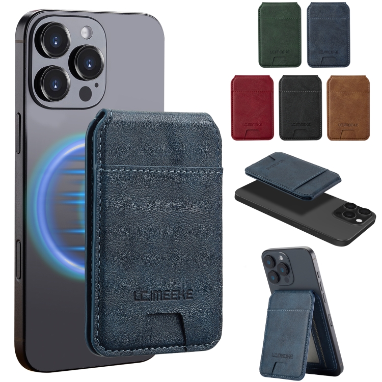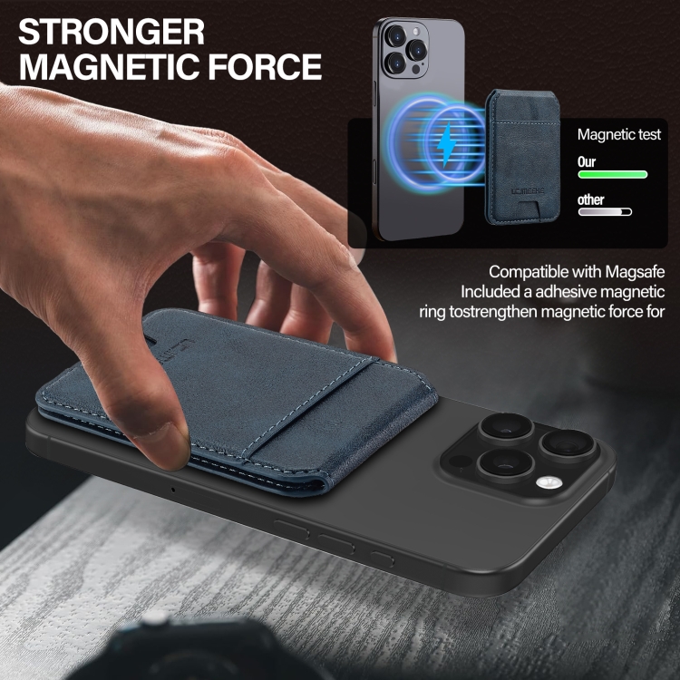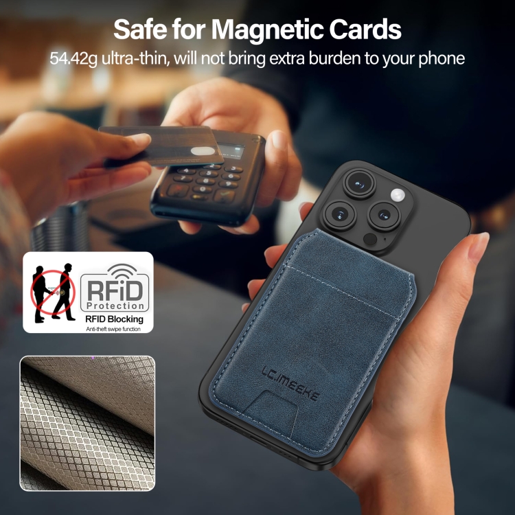 Funda de Cuero Lc.Imeeke Protección RFID para 3 Tarjetas Magsafe (Azul)