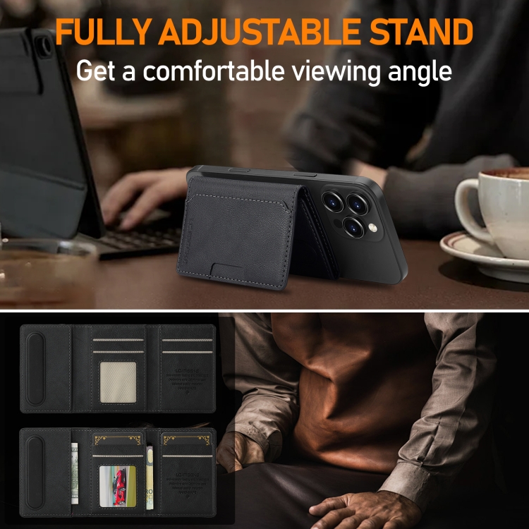 5. La funda para tarjetas plegable se puede utilizar como soporte para teléfono, que se puede ajustar en varios ángulos para liberar sus manos.