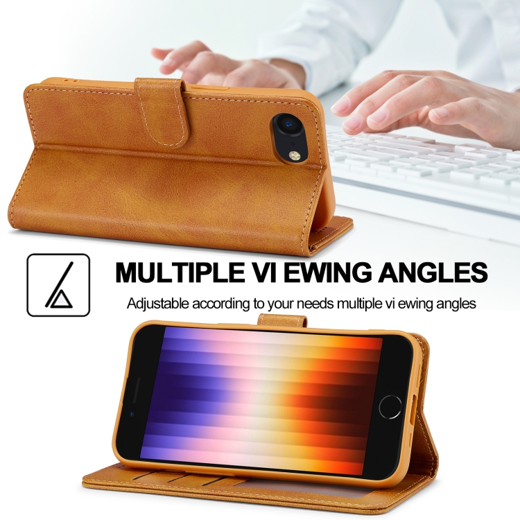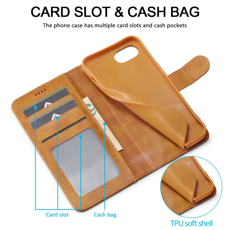 Funda de Piel Lc.Imeeke para iPhone 16E con Tapa Horizontal y Textura de Piel de Becerro (Amarillo)