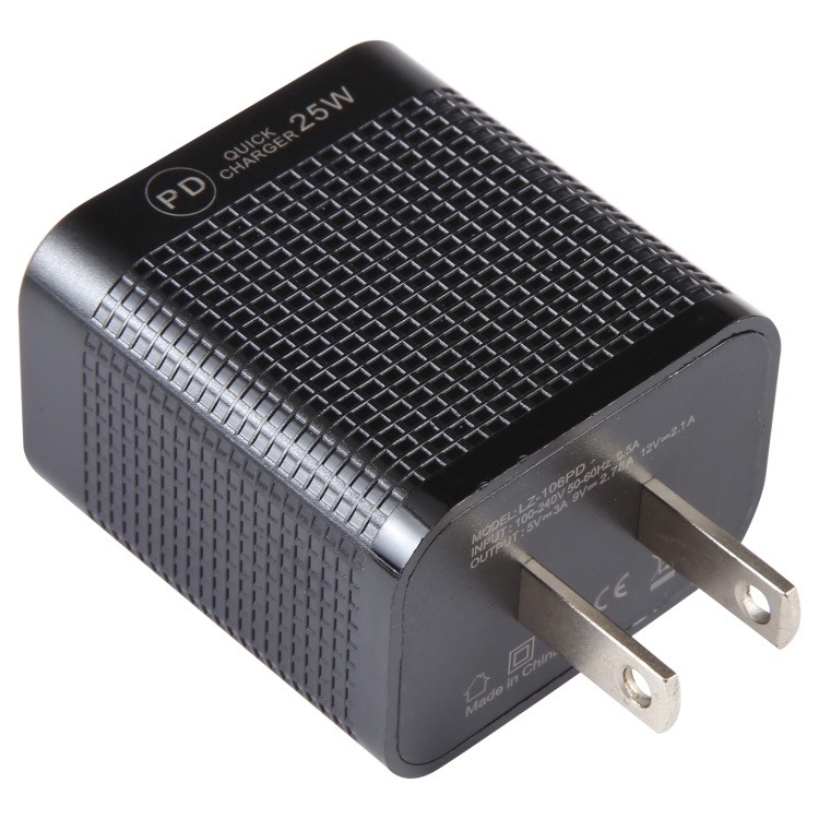 Cargador de viaje Lz-106Pd 25W USB-C Type-C con patrón a cuadros (Negro)