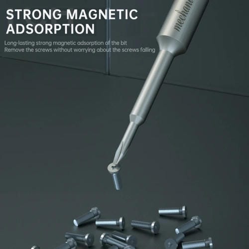 El destornillador magnético de aleación Mechanic Meta con punta Pentalobe 0,8 está diseñado específicamente para la reparación de Teléfonos Móviles, especialmente modelos de iPhone que requieren esta precisión en tornillos. Su construcción en aleación de aluminio de aviación garantiza ligereza y durabilidad, mientras que la punta tridimensional ofrece un ajuste perfecto para tornillos Pentalobe de 0,8 mm. Este destornillador es una herramienta profesional que facilita el desmontaje y montaje de componentes internos, optimizando el trabajo de usuarios que reparan por cuenta propia y técnicos especializados.