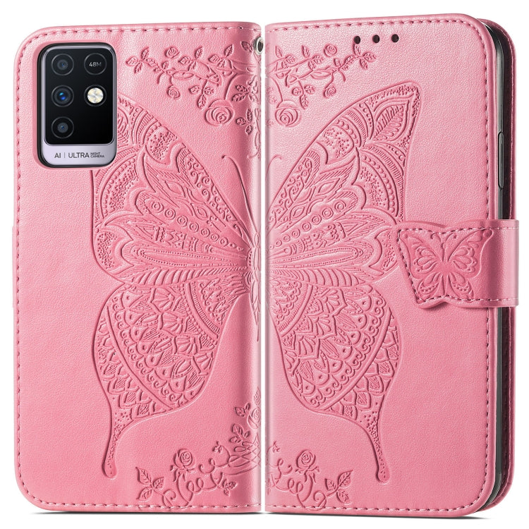Funda Cuero Horizontal Mariposa Amor Flores con Soporte y Ranuras para Tarjetas para Infinix Nota 10 (Rosa)