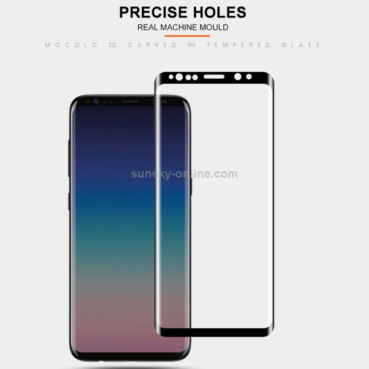 Película de Vidrio Templado Mocolo Full Glue 0.33mm 9H 3D Borde Redondo para Galaxy S9 + (Negro)