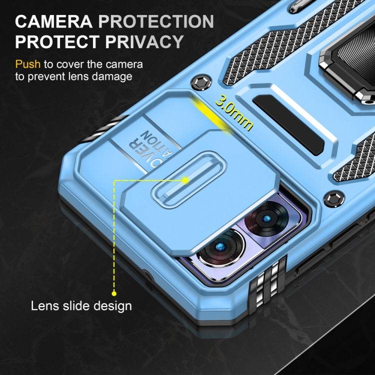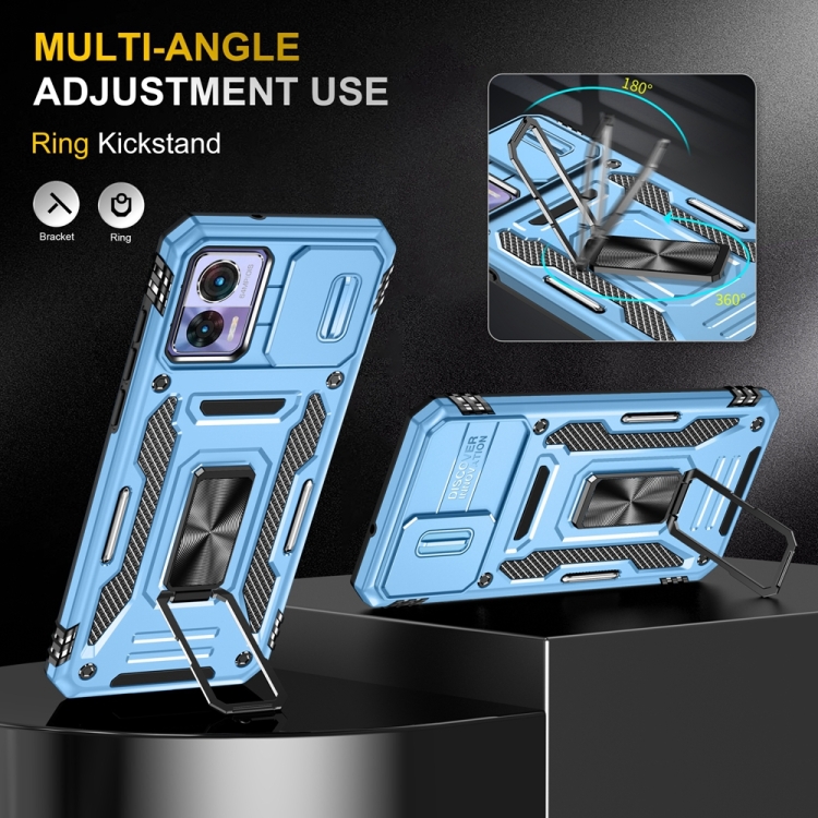La Funda para Motorola Edge 30 Neo Armor combina materiales de alta resistencia para ofrecer una protección integral al dispositivo. Fabricada en TPU y PC, proporciona durabilidad y resistencia frente a impactos y caídas. Su diseño incluye una Cubierta deslizable para la Cámara que protege eficazmente contra arañazos, manteniendo la integridad de la Lente. Además, cuenta con protección de Bolsas de aire en las cuatro esquinas para absorber golpes. Este Accesorio incorpora un Soporte magnético compatible con sistemas de sujeción para autoMóvil, garantizando estabilidad durante la conducción. También dispone de un anillo metálico giratorio 360 grados que permite un agarre seguro y versátil, tanto en orientación horizontal como vertical. El acabado con proceso de microcepillado asegura un tacto cómodo y antideslizante, optimizando el manejo del Teléfono.