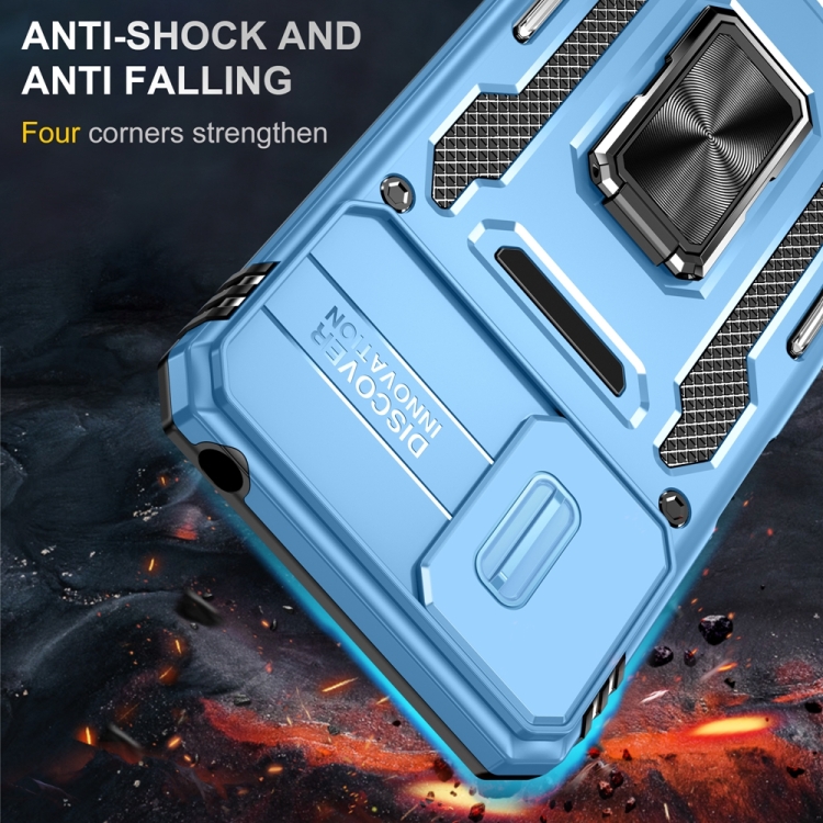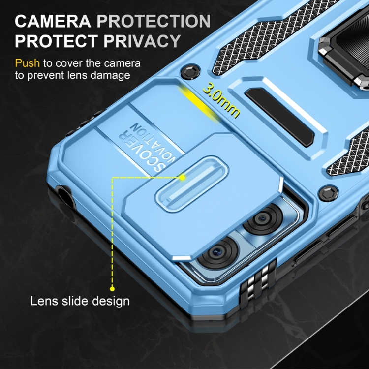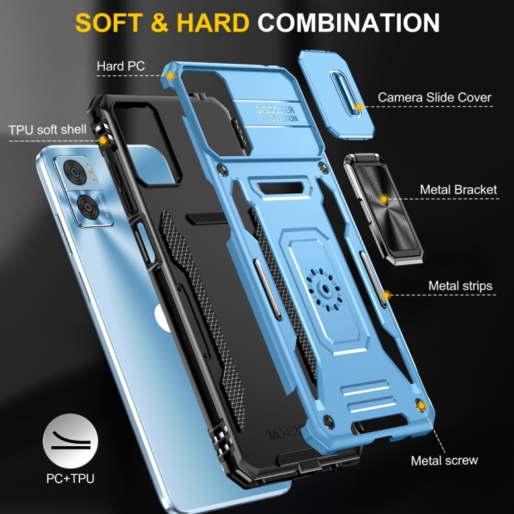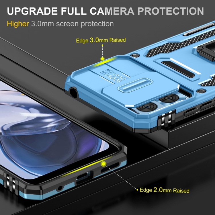 - 1x Funda Motorola Moto E22 Armor PC y TPU con Protector Cámara (Azul Claro)