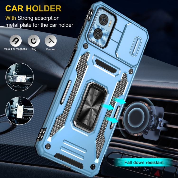La Funda para Motorola Moto E22 Armor combina materiales de alta resistencia como TPU y PC para ofrecer una protección integral y duradera. Diseñada específicamente para el modelo Moto E22, esta Carcasa incluye un Protector deslizante para la Cámara que previene daños y rayones, manteniendo la Óptica en óptimas condiciones. Su estructura incorpora Bolsas de aire en las cuatro esquinas para absorber impactos y minimizar daños por caídas. Además, cuenta con un Soporte magnético compatible con sistemas de montaje en autoMóviles, garantizando estabilidad durante su uso vehicular. El anillo metálico giratorio de 360 grados facilita el manejo del dispositivo, permitiendo su Soporte tanto en orientación horizontal como vertical. El acabado con microcepillado proporciona un agarre cómodo y seguro para el usuario.