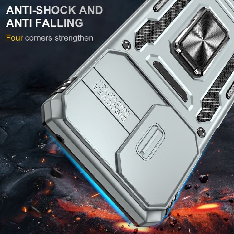 • Protector deslizante para Cámara, protección con Bolsas de aire en las cuatro esquinas, Soporte magnético para autoMóvil, anillo metálico giratorio 360°, acabado microcepillado
