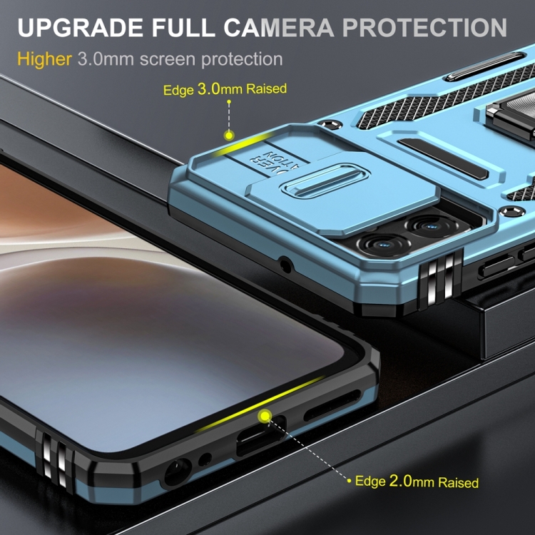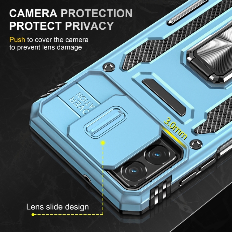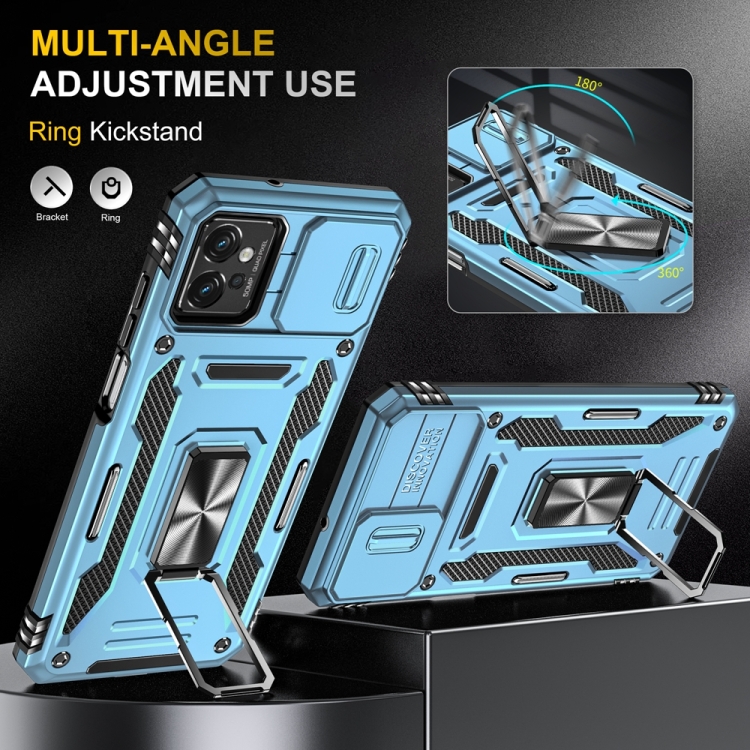 La Funda para Motorola Moto G32 Armor combina materiales de alta resistencia como TPU y PC para ofrecer una protección integral y duradera. Diseñada específicamente para el modelo Moto G32, esta Carcasa protege el dispositivo contra caídas, impactos y arañazos, especialmente en la Cámara gracias a su Cubierta deslizable. Además, incorpora funciones Adicionales como Soporte magnético para autoMóvil y un anillo metálico giratorio de 360 grados para facilitar el manejo del Teléfono. Su acabado con proceso de microcepillado proporciona un agarre cómodo y seguro, ideal para usuarios que requieren una protección robusta sin sacrificar funcionalidad.