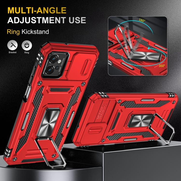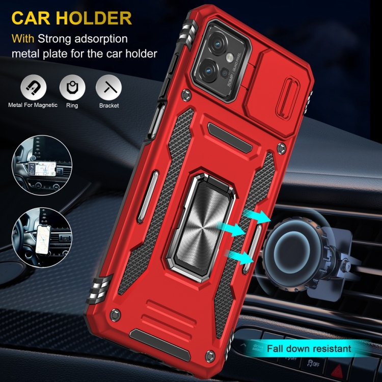 La Funda para Motorola Moto G32 Armor está diseñada para ofrecer una protección integral y funcionalidad avanzada. Fabricada en combinación de TPU y PC, proporciona resistencia y durabilidad frente a impactos y caídas. Su diseño incluye un Protector deslizante para la Cámara que previene arañazos, manteniendo la Óptica segura durante el uso diario. Además, incorpora protección con Bolsas de aire en las cuatro esquinas para absorber impactos, un Soporte magnético compatible con sistemas para autoMóvil, y un anillo metálico giratorio 360 grados que facilita el manejo estable del dispositivo tanto en orientación horizontal como vertical. Esta Funda en color Rojo combina protección y practicidad, ideal para usuarios que requieren seguridad y comodidad para su Motorola Moto G32.