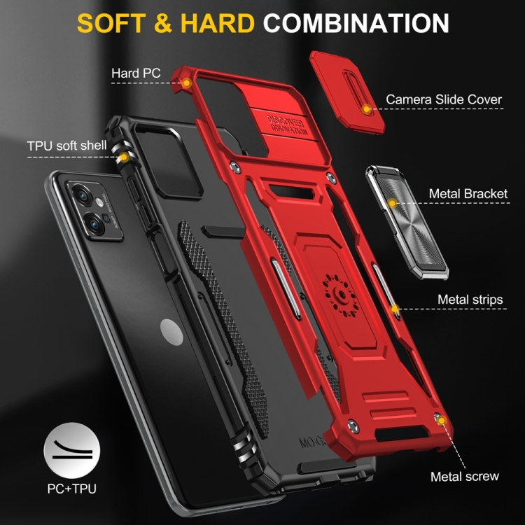 Funda Motorola Moto G32 Armor PC y TPU con Protector Cámara (Rojo)