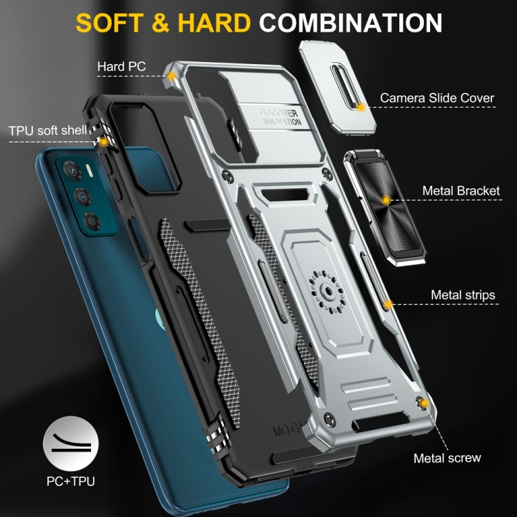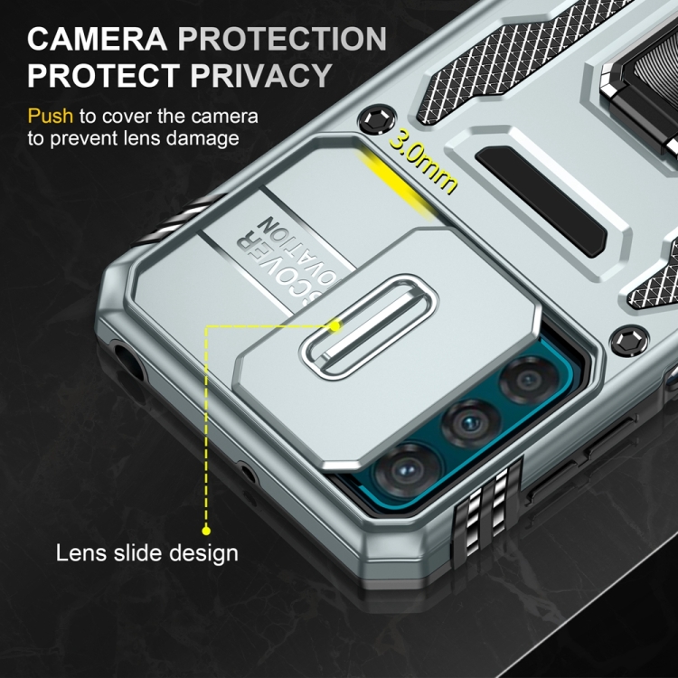 La Funda para Motorola Moto G42 combina materiales de alta resistencia como TPU y PC para ofrecer una protección integral y duradera. Diseñada específicamente para el modelo Moto G42, esta Carcasa protege eficazmente el dispositivo contra impactos, caídas y arañazos, especialmente en la Cámara gracias a su Cubierta deslizable. Además, incorpora funcionalidades Adicionales como Soporte magnético para autoMóvil y un anillo de Metal giratorio que brinda estabilidad en diferentes posiciones, facilitando su uso tanto en orientación horizontal como vertical. Su acabado con proceso de microcepillado proporciona un agarre cómodo y seguro, ideal para usuarios que requieren una protección robusta sin sacrificar funcionalidad.