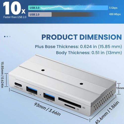 3. Salida: 2 puertos USB 3.0 + 1 puerto Tipo C 3.0 + tarjeta TF/SD