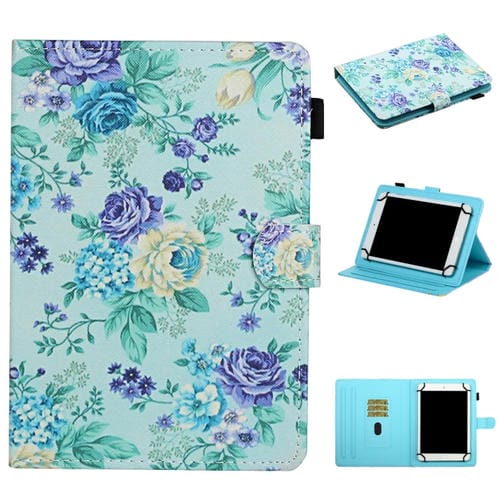 - 1x Funda para Tablet 7 Pulgadas Universal Cuero Tapa Horizontal Flores Ranuras Tarjetas Soporte