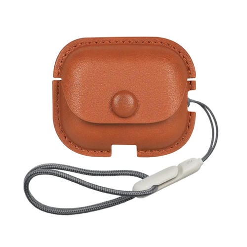 Funda Protectora para AirPods Pro 2 Litchi Texture PU Cuero con Cordón (Marrón Claro)