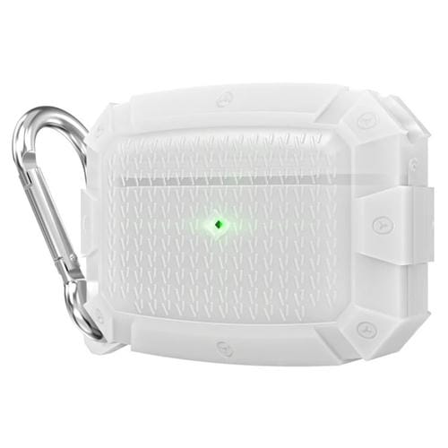For AirPods Pro Shield Armor Waterproof Protective Case Wireless Earphone Cover with Carabiner (Fluorescent White)