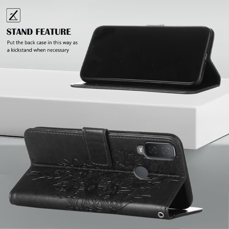 Funda para Alcatel 1L 2021 de Cuero con Mariposa en Relieve (Negro)